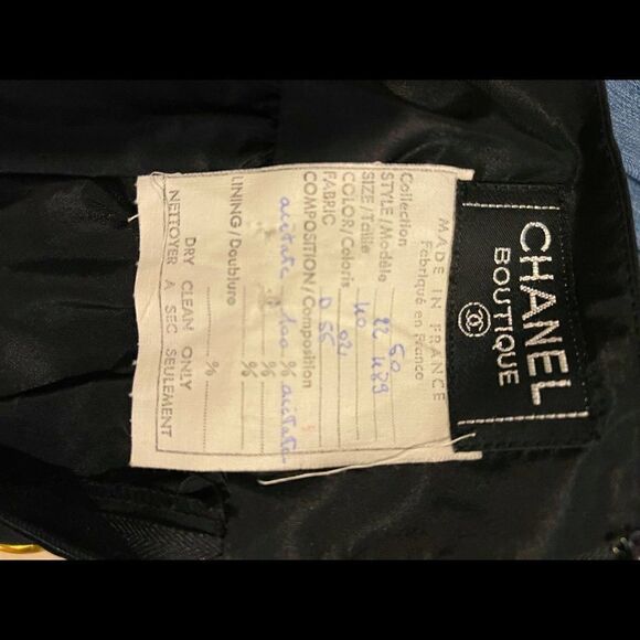 Vintage darling Chanel full skirt with hand written tag in French. Tag says that it is from Collection 50. Perfect condition! I see no flaws at all. It is 100% taffeta acetate. Waist has a three inch drop then it is tightly gathered. Waist is 13” and the length is 20”.