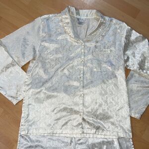 Vintage Character Matching Ivory Pajama Set Long Sleeve Button Down With Pants S