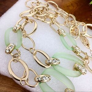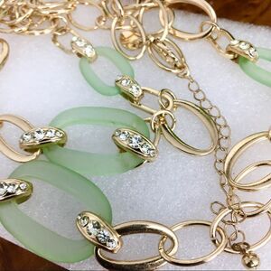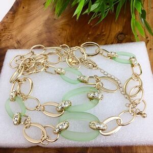 Charming Charlie Mint Green Gold Tone Rhinestone Statement Link Necklace Chunky. Approximately 36“ long + 3“ extension. Nice preowned Condition without notable flaws or damage. Please preview all Pictures for Condition and/or measurements. If you have any questions please ask prior the purchase. Your Order will be shipped with care.
