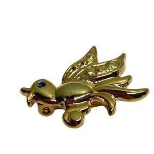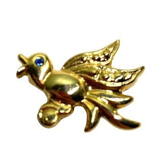 Vintage Chick Bird Brooch Pin in Gold Tone with Blue Rhinestone