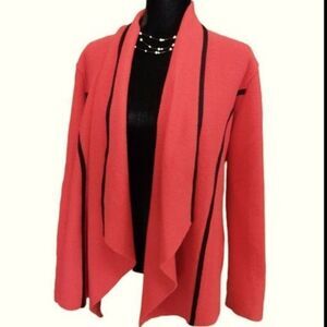 Vintage Chico'S Jacket 100% Wool Blazer Open Cardigan Wide Lapels Red Black Sz 3