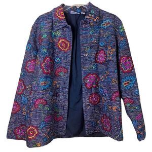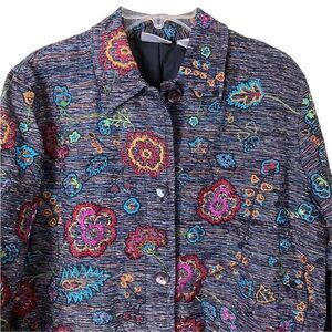 Vintage Chico's Design Silk Blend Embroidered Button Down Jacket Size 1 Medium