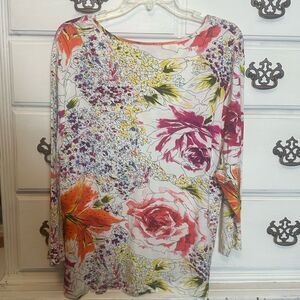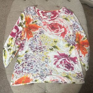 Vintage Chico’s Floral Top. Features a watercolor like floral pattern all over. V neck with 3/4 length sleeves. Size converted according to online size chart. Excellent used condition.