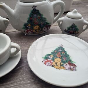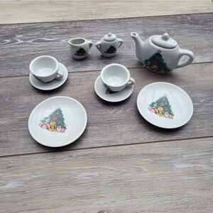 Vintage Childs 17 Piece Porcelain Christmas Tea Set Christmas trees