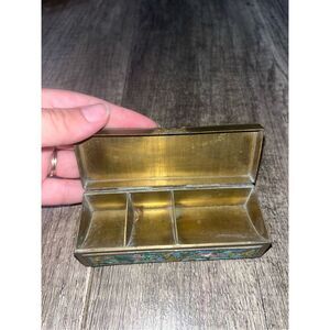 Vintage Chinese Brass Enamel Hinged Stamp Box Trinket Box