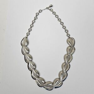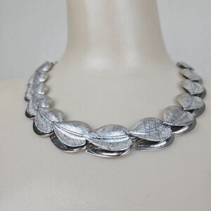 Vintage Choker Necklace Silver Tone Metal Leaf Leaves Link Smooth Textured