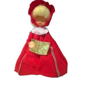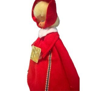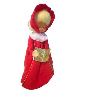 Vintage Christmas Angel Caroler Tree Topper Choir Red Felt Dress Paper Cone 9”