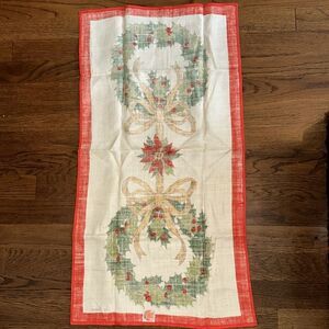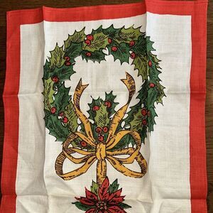 Vintage Christmas Falani & Cohn Linen Wreath & Poinsettia Linen Tea Towel