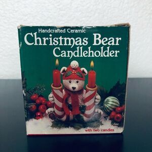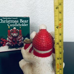 New in original box vintage Christmas ceramic or porcelain polar bear with candy cane candle holders figurine decor.