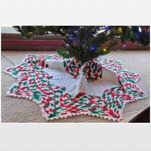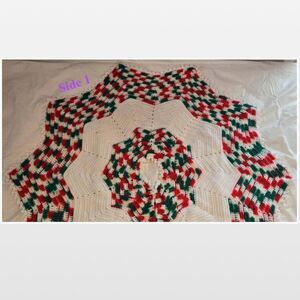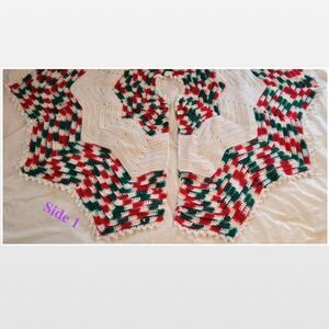 Vintage retro hand crochet round snowflake shaped Christmas tree skirt. A labor of love & old school Christmas decor is just what your home needs for the holidays! Features scalloped edge & soft stretchy knit fabric. Approx. 48” diameter, each side 24”L, & center opening 3” diameter. 1 unnoticeable spot might wash out. Ask any questions before purchasing. Same or Next Day Shipping 🎁 Hit the buy now button, Make an Offer, or Bundle to Save 😊💕 All sales final & sold as is.