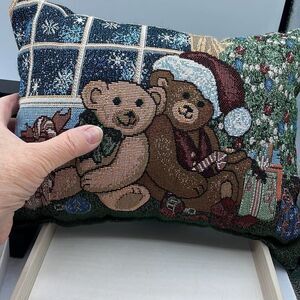 Vintage Christmas bears and tree tapestries pillow. 12.5” X 10” . No rips tears stains or fading.