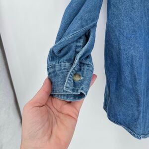 Vintage Christmas denim button down embroidered reindeer shirt Christmas large 1
