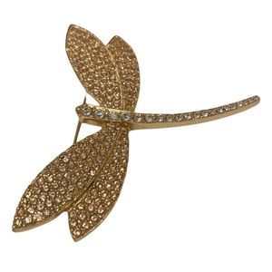 Vintage Ciner Gold And Rhinestone Figural Dragonfly Brooch Or Pin