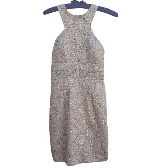 Vintage City Studio Champagne Lace Halter Sequined Mini Dress Size XS