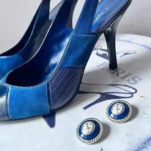Vintage Clip On Navy Blue Gold Cream Earrings