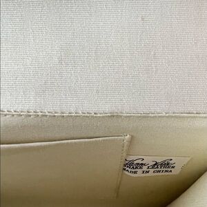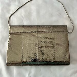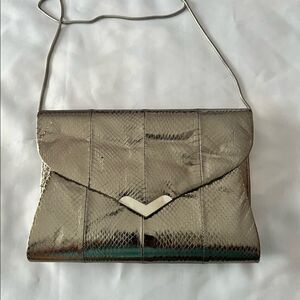 Vintage Snake skin purse by Vanna White. Metal strap and button closure. Inside fabric free of stains.