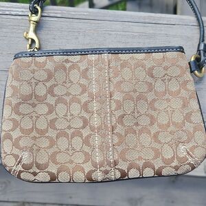 Vintage Coach Navy Leather & Jacquard Signature Wristlet