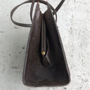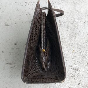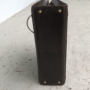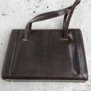 Absolutely beautiful Lizard skin bag. Made in France. It’s in great condition just needs a little touch up on two corners that I showing pictures. Measures approximately 10 x 7 x 3 1/2 and the handle drop is approximately six