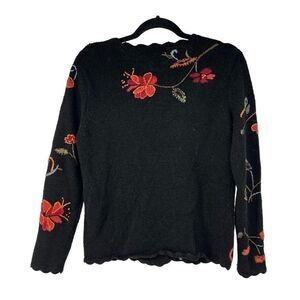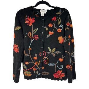 Vintage Coldwater Creek Heavily Floral Embroidered Button Up Cardigan