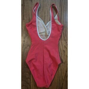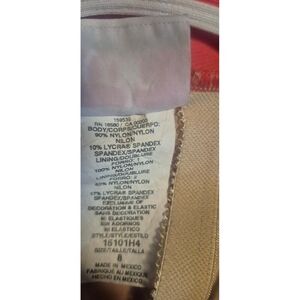 Like new. No signs of wear. Measures 13.5" pit to pit & 27" shoulder to panty hem. Has built-in bra with padding. High-cut & ribbed. Comes from a smoke-free / pet-free home.