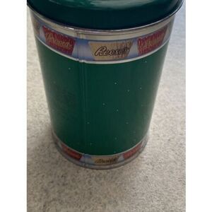 Vintage Collectible Tin - 1990 Hershey Reeses - Green Christmas Bear in Stocking.