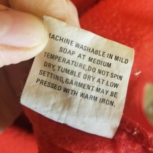Red, piling and some spotting. Please see all photos. I would consider this full size in fair to good condition. Bright red.
