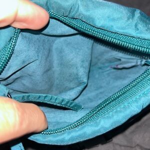 Dark aqua color. In excellent condition. Made in the 90’s original fanny pack. Lots of storage