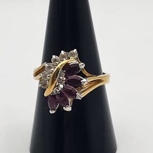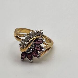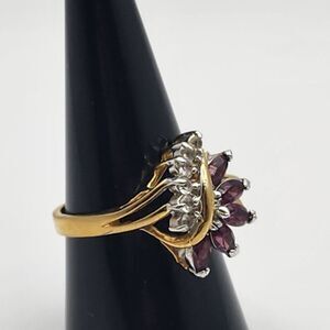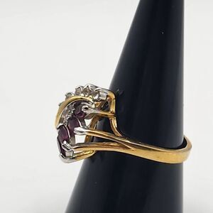 Vintage Contempo Gold Tone Purple & Clear Crystal Cocktail Ring (9)