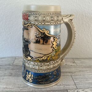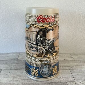 This limited 1989 edition serial #101821 was made by Ceramarte of Brazil. The Stein depicts a 1910 Coors and beautiful mountain scenery. Measures 7” Tall. Excellent condition, no chips or cracks.