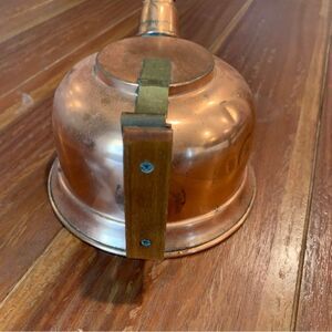 Vintage Copral Copper Brass & Wood Handle Tea Pot. Good vintage preowned condition. See denting and wear. Don’t see any way to open it so I don’t think it’s really a tea pot. Unique. Approximately 7 inches in diameter at the bottom and 5 inches tall.
