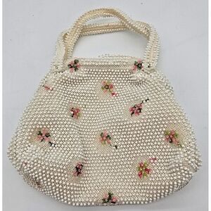 Vintage Cordé Bead Floral Embellished White Beaded Handbag