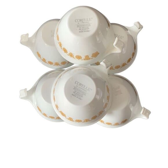 Elevate your tea or coffee time with the Vintage Corelle Lot of 6 Gold Butterfly Hook Handle Coffee Teacups Corning.