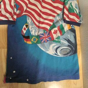 Vintage Cotton Traders American Flag International Flags Outer Space Polo, Size Large (Estimate - No Size Tag) - Measures p2p=21" Length=30" - Excellent Condition, No Flaws