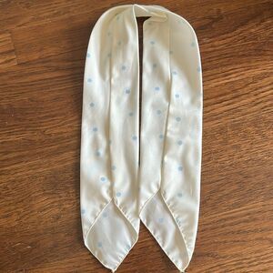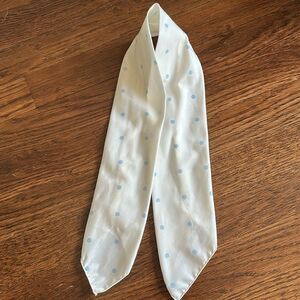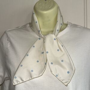 Vintage Creamy White Polyester Neck Scarf with Light Blue Polka Dots