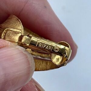 Vintage Crown Trifari teardrop shaped hoops. Clip style