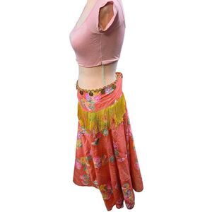 Gorgeous custom made vintage bellydancing outfit! Includes cropped top and vintage silk skirt with removable fringed sash. Absolutely stunning and one of a kind!