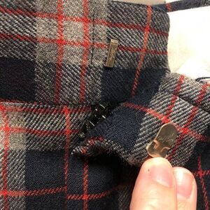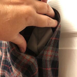 These vintage wool pants are in excellent condition. There are two tiny flaws... a small almost imperceptible hole near the waist. And a little bump in the fabric near one pocket (see pics). Otherwise they are perfect. They have a tab closure side pockets, and two pockets in the back. They were made for Raleigh’ of Washington. They don’t have a size.