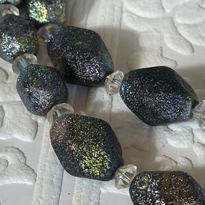 Vintage antique Czech glass bead necklace with an iridescent textured finish. Art Deco period, from the 1920s to the 1930s.