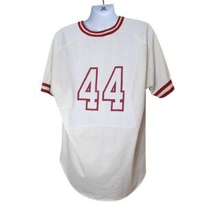 This vintage Budweiser jersey offers a stylish nod to classic sportswear with its breathable mesh fabric. Its striking red and white color scheme, coupled with the iconic Budweiser logo, makes it a standout piece for casual outings or sports events. A unique addition to any collection.
