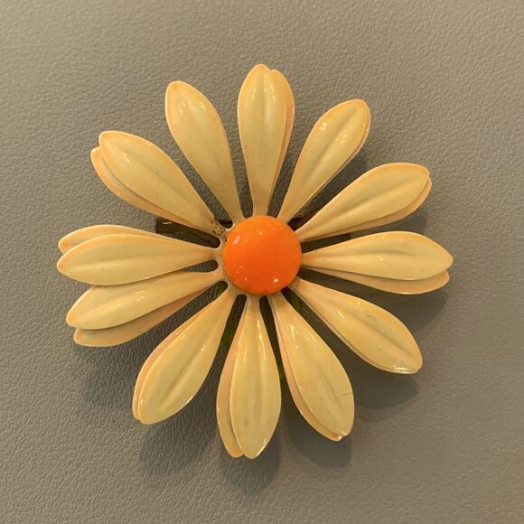 Vintage Daisy pin. Enameled metal. Very good condition.
