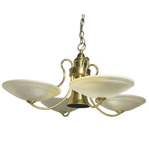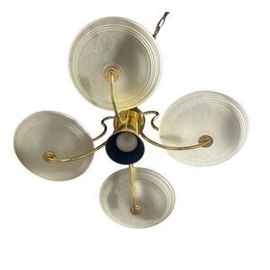Vintage Danish Modern Brass and Frosted Glass Chandelier Light