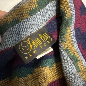 Turn heads with this bold and unique vintage piece! This David Paul New York blazer features a striking tribal-inspired western print with a semi-cropped silhouette that pairs effortlessly with high-waisted denim, skirts, or trousers. A true statement jacket for collectors and vintage fashion lovers alike.