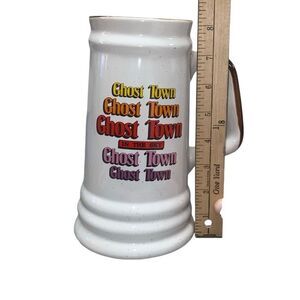 Memorabilia from the defunct theme park Ghost Town in the Sky in Maggie Valley NC. XL size ceramic stein, measures approx 8” height. Seems to lean slightly to the right. Please see pics. Rare piece!