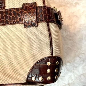 Vintage Diane Von Furstenberg Croc Embossed Leather and Cream Canvas Handbag