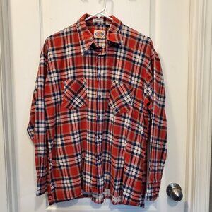 VintageDickies Red & Blue Plaid Flannel Shirt | 100% Cotton Lumberjack Style | L