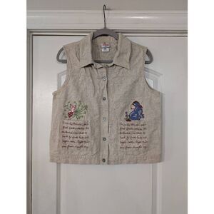 Vintage Disney Store Linen Vest Winnie the Pooh Women's Large tan embroidery