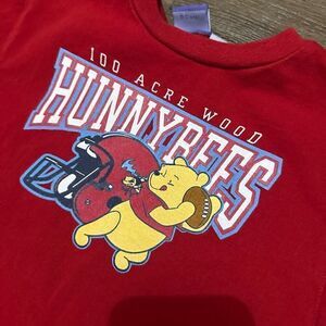 Vintage Disney Winnie the Pooh Football Graphic T Shirt Red Hunnybees Boys 4T