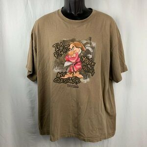 Vintage Disneyland Resort T Shirt XL Tan Grumpy Dwarf Crew Neck Short Sleeves