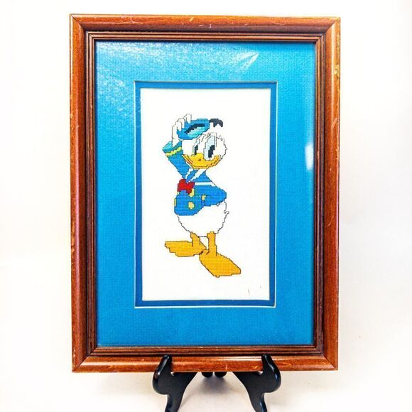 Vintage Donald Duck Framed Needlepoint Cross Stitch Nursery Decor