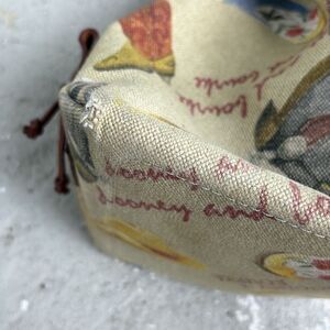 Check out the pictures. This is a super cute bag that needs cleanup and has where on the corners. Which I show in pictures. Measuring across the bottom is approximately 12 x 10 x 5.